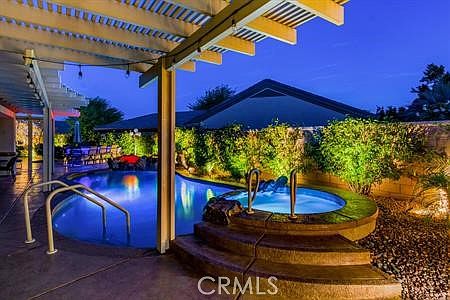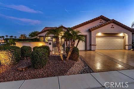**Price Improvment**Stunning 3 bedroom 2 bath POOL HOME in the highly desired Sun City Palm Desert 55+ community! Located on a spacious CORNER LOT in a CUL-DE-SAC with a courtyard that leads to main entry! Beautiful eat-in kitchen w/pantry that opens up to a spacious family room w/built-ins & sliders that extend into the backyard paradise! Solar heated salt water Pebble-tech pool & spa, FIRE-PIT, covered ALUMAWOOD PATIO, built-in kitchen with a Viking grill & surrounded by lush landscaping & epoxied ground. Massive primary bedroom ensuite w/sitting area & views of the fabulous backyard. 2 other oversized rooms for your guests, and a bonus office area! Laundry is conveniently located inside with storage cabinets, plus there is a 2 car garage with a golf cart space, along with A/C & epoxy floor inside & out! This gated community offers 3 fabulous clubhouses, restaurants, indoor heated pool as well as 3 outdoor pools & spas. Two state of the art fitness centers, 2 championship golf courses, 9 hole putting course, tennis, bocce ball, pickleball & over 80+ clubs & social groups to join! Located in a lower cost electrical district. Close to the shopping center, restaurants and entertainment! This is much more than a home- this is your new leisure lifestyle!