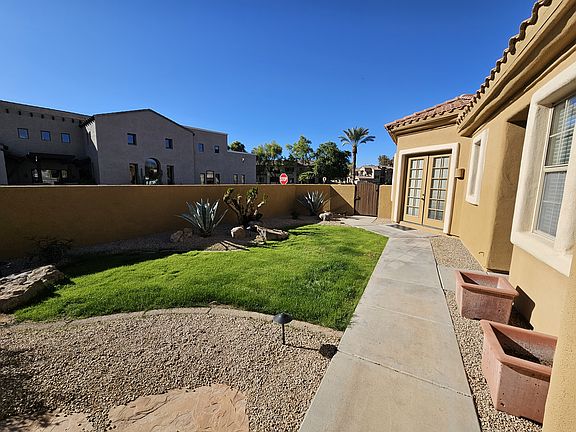 Unique opportunity to lease this spacious single home in the prestigious gated Scottsdale Country Club Community. Prime corner lot situated on the 1st hole of the Hawk 9 course. Beautiful entry with grassy courtyard, Casita entry and a beautiful private pebble tech pool with rock waterfall feature. Community pool/bbq area only a short walk from the home. Freshly painted interior. Beautiful light and bright home with soaring ceilings. Huge great room off kitchen. Split master suite. Ample sized covered patio area off great room with wonderful golf and mountain views. Travertine flooring throughout except for the BRAND carpet in bedrooms and master bath. Conveniently located to shops, dining, entertainment and the 101 freeway. Have a look today before its gone! **New fridge and cook top to be installed by the Friday December 13th and new Microwave and Oven by January 20th.** Tenant responsible for all utilities. Landlord covers pool and landscaping services for the property. Landlord has landscaping work being done at this time. It should be complete within 2 to 3 weeks.