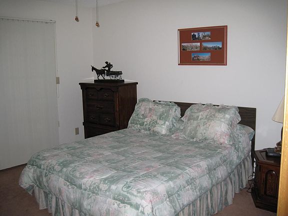 Furnished 2 bedroom, 2 bath on greenbelt. Masterbath with oversized shower. 2nd bedroom has french doors to small patio. Living room has queen size futon sofa. Pool table and fireplace is living room. Community has 2 tennis courts and pool. One block to Eldorado Park.
