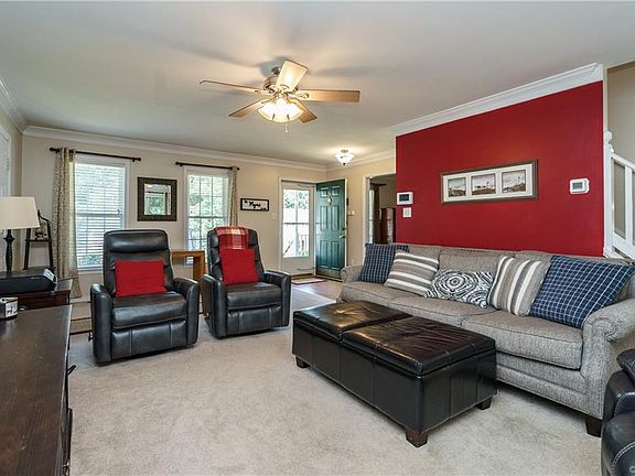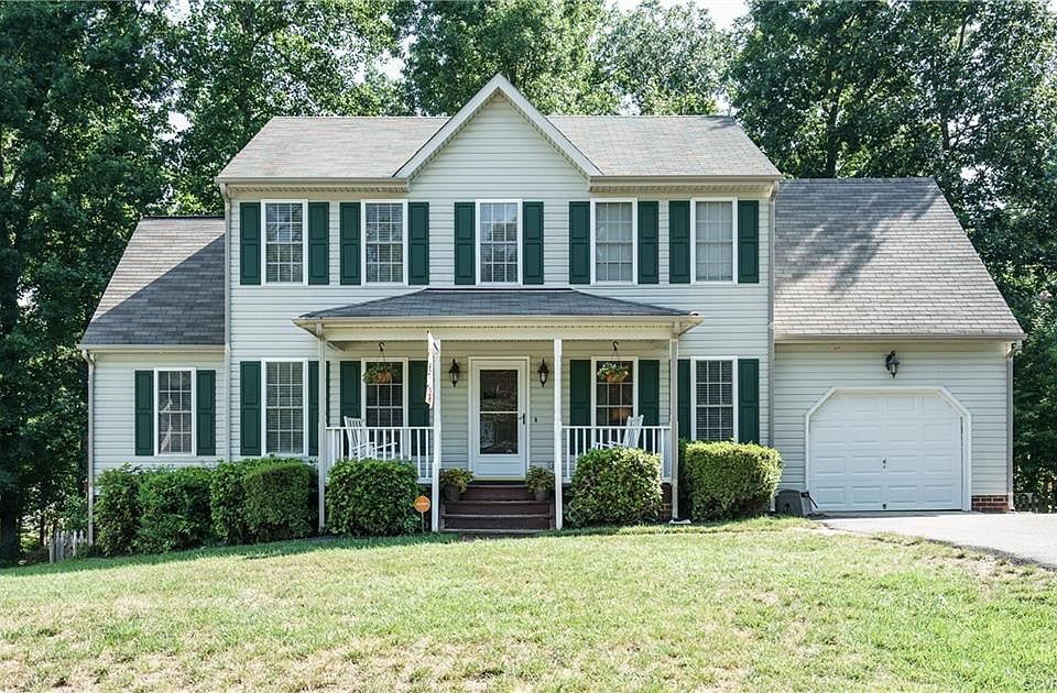 Welcome to this maintenance free treasure situated on a LARGE, PRIVATE LOT in the waterfront community of Ashbrook! As you approach the inviting full front porch, you will envision yourself having morning coffee on your relaxing rocking chairs. Enjoy cook-outs on the spacious deck overlooking a large FENCED backyard with mature trees. The bright & stylish family room has plush carpet, custom molding & a ceiling fan. You can use the versatile flex room as a dining room, office or playroom! The oversized eat-in kitchen flaunts bar seating, white appliances, a pantry, newer vinyl flooring and recessed lighting. Upstairs, find a master bedroom with an expansive walk-in closet and an en-suite bath. Three additional bedrooms & a main bathroom round out the second floor. This delightful home also offers maintenance free vinyl siding, vinyl windows, a one car garage and a NEWER HVAC unit! Ashbrook is convenient to shopping, dining, the swift creek reservoir and route 288. Community gatherings include fall BBQ's, summer picnics and casino nights! Located in the sought after COSBY HIGH School district, this gem will not last long!