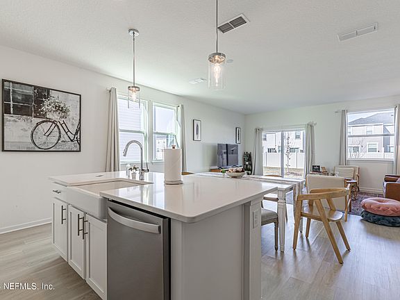 This practically new Oakleaf townhouse is ready for you today! Don't go through the hassle of waiting for new construction when you can buy this one right now, plus you'll save THOUSANDS on UPGRADES. As you step inside, the home is inviting, modern and open. The first floor boasts beautiful luxury vinyl plank flooring throughout. The kitchen features designer light fixtures, quartz countertops, upgraded cabinets and upgraded appliances. The first floor hosts your kitchen, guest bath, and living/dining area. All bedrooms are upstairs. They are large rooms, especially the primary bedroom. Both bathrooms have double sinks with quartz countertops! With expanding retail, restaurants and our highway system all around this neighborhood, it doesn't get much more convenient!