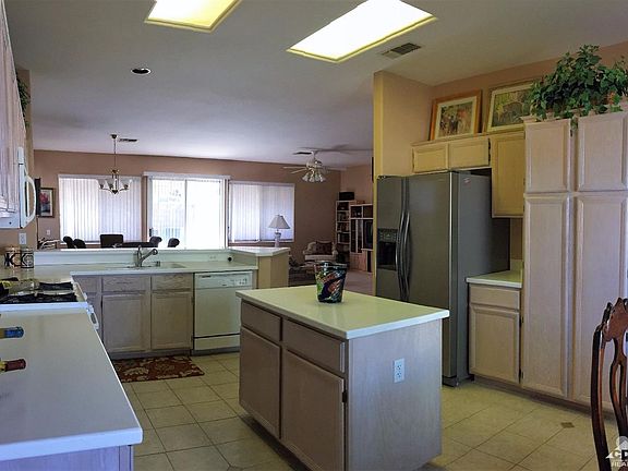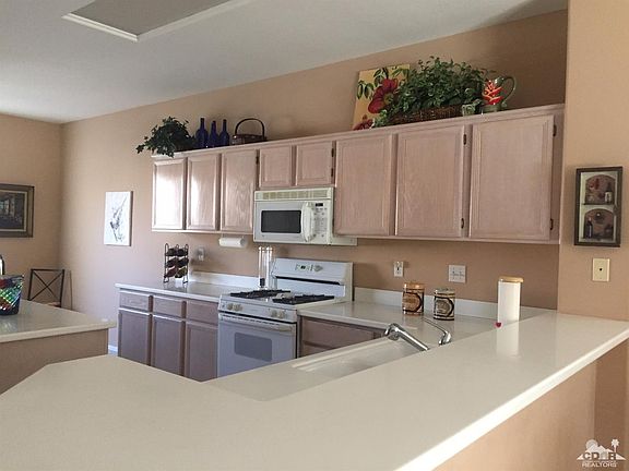 Much sought after St. Croix model with open floor plan. Neutral earth tone color paint throughout. Offered with furnishings per inventory including golf cart! The most popular floor plan in Sun City. South facing back patio to enjoy the sun of the season! Kitchen with ample corian counters, prep island with storage underneath. Breakfast area overlooking the front yard. Tile floor in high traffic areas. The acclaimed master suite, one of the most popular features of this floorplan, with seating area and private bathroom with dual vanity, walk-in closet, bidet toilet. Private guest bedroom with second bathroom close by also with bidet toilet and tub/shower. Den and separate hobby room used as office. A/C condenser replaced in 2011. 2 car garage plus golf cart garage...did we mention the golf cart is included too! With an array of amenities to enjoy, come see what Sun City Palm Desert lifestyle is all about.