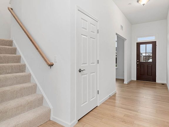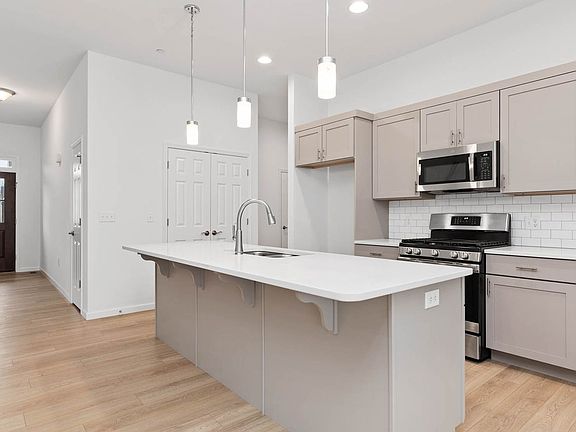 This 2-story townhome, located in a 55+ lifestyle community by Landmark Homes, includes a 2-car garage with mudroom entry and 10 ft ceilings on the first floor.. Stylish vinyl plank flooring in the foyer extends to the study, dining area, and kitchen. The kitchen features stainless steel appliances, attractive cabinetry, and quartz countertops with tile backsplash. The vaulted family room provides sliding glass door access to the rear patio. Tucked quietly to the back of the home, the owner's suite features a spacious closet and a private bathroom with double bowl vanity and tile shower. On the 2nd floor is a loft space, an additional bedroom, full bathroom, and a finished storage area. Amenities: Unfinished Basement