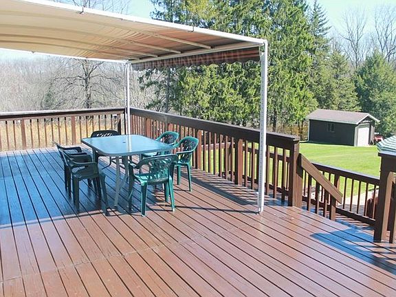 First time on the market this ALL Brick home has so much to offer. Situated on a large 2.72 acre lot enjoy space for gardens, campfires, riding ATV"s and much more. Large double decker rear deck with awning, central air, new windows, doors, and roof. Hardwood flooring on the main level. The large windows along with the all brick structure keeps this home solid, and energy efficient. Large shed on the property could be used for an additional one stall garage. Large laundry room in basement with laundry chute.