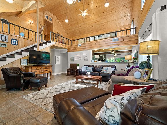 A Creek-side Masterpiece, Nearly Every Room Stuns. Luxuriously updated interior, Exposed timber beams, High ceilings, Rich cabinetry, Gourmet kitchen with Gorgeous built-ins, Large loft, Dual-sided stone fireplace, Glass dining room and a Sitting area off of the dining room to enjoy the fireplace and meld. Master bath features detailed tile work and jetted tub, Plentiful porches & decks perfect for entertaining or relaxing. Back porches are cliff side overlooking 180 degrees of your own private, gorgeously clear Pearl Creek to splash around in with serene, unobstructed wooded views. 2 car garage and large metal building for storage, RV hook-up, and storage room. This incredibly crafted retreat offers endless recreational opportunities including fishing, kayaking, hiking, and more!