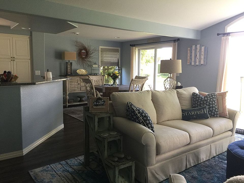 Perfect view setting on the 14th Green and country setting. Two patios to enjoy the golf course or outdoor entertaining. LR with gas fireplace. Kitchen has pantry, breakfast bar, pullouts, instant hot water, B/I range, and microwave. Informal and FD dining. Walk-in pantry/storage. Master has vaulted ceilings, W/I closet, double sinks and lots of cabinets. Carefree condo living.