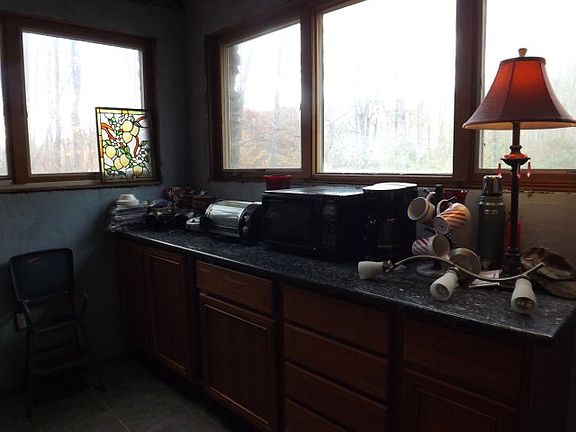 If solitude is what you seek, look no further. A unique property that could be used as a getaway or a full-time home. Stone and stucco exterior, metal roof, two covered porches overlooking the woods, master suite and laundry on the upper level, open living/dining/kitchen area, full bath on each floor. Electric baseboard heat is supplemented with a Hearthstone soapstone woodstove and propane stove. Attached 2-car garage, drilled well and sandmound septic. Wildlife abounds in the woods, meadow and pond. Several old logging roads throughout the 21.6 acres make great trails.