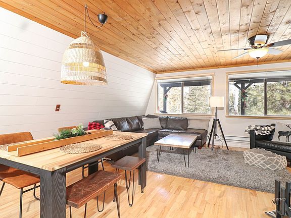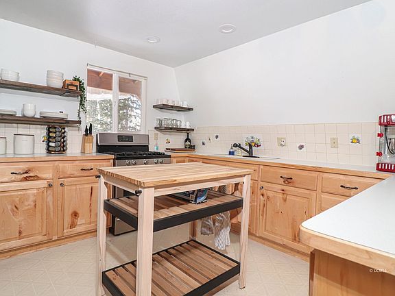 Pride of ownership shows in this wonderful 1344 st cabin. Very clean & appealing. Open living space with woodburning stove. Kitchen features lots of countertop space including a dining bar that can seat 4. Laundry right on main level for easy access. Covered deck front & back. Two spacious bedrooms upstairs. Both bathrooms recently remodeled. New wood flooring on main level. Storage shed and RV parking/hookups. Lovely lot with pine, aspen, & spruce.