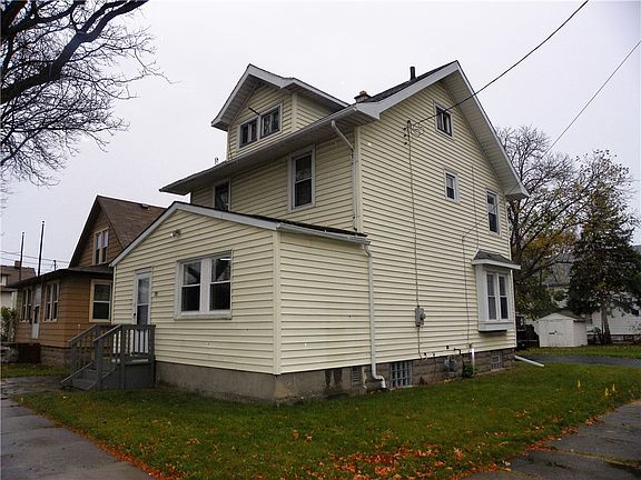 This striking, freshly painted over 1430 square feet, 4 bed, 1 bath colonial with a large yard on the corner of McNaughton, in one of the hidden gem locations is finally available and is move-in ready! Featuring: Inviting enclosed porch, new laminate flooring, gleaming refinished hardwoods, NEW 6 panel doors throughout, NEW kitchen cabinets, NEW gas stove, NEW butcherblock countertop, NEW lights fixtures throughout, spacious formal dining room w/ shelf window, large carpeted living room w/ built-ins, newer thermopane windows, NEW upgraded bath w/ ceramic tile/ built-in cubby & fiberglass tub, vanity, laminate flooring, mirrored cabinet & light fixture. The upper level boasts 3 bedrooms, walk-in & linen closets, & the full finished attic enters from the hall as possible 4th bedroom. Newer roof '17, newer hot water tank '17, energy efficient radiator style heat, low maintenance yard & maintenance-free siding makes this home more affordable than most. The full, unfinished basement and storage shed are bonuses! The neighborhood of sidewalk/street light-lined streets offers a very walkable location & convenient to expressway, parks, shopping, entertainment, Downtown, & airport.