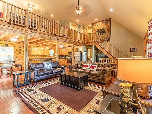 A place where memories are made, for you, your family and countless others as a vacation rental, this mountain cabin is a great place to call home, whether for a few nights or forever. Located in a gated community with smooth, paved roads, this property comes furnished and features quality construction, main level living and a gorgeous mountain view. On a clear day, the tower atop Clingman's Dome is visible. The open floor plan features a spacious kitchen, a wood burning fire place, vaulted ceilings and windows that look out onto the large deck and stunning mountains. The main level also includes the primary suite with loads of space, a full bath, and a half bath with laundry center. Upstairs there are 2 more bedrooms, a full bath and a spacious loft with foos ball and air hockey. Whether sitting on the deck with your morning coffee as the smoke rises off the mountains, enjoying a glass of wine in the hot tub as the sun sets and stars appear, or spending time around the fire pit, you will love to call this home. Conveniently located close to town, an easy drive to all of the area attractions, this turnkey vacation rental or second home is just what you've been looking for!