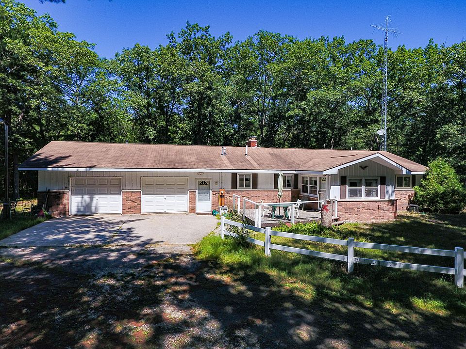 10 ACRES NEAR TOPINABEE. Just a short distance off I-75 at 313 Exit. Follow the long drive back to your peacefully wooded setting. Over 2200 sq ft of living space with 3 bedrooms and 3 bathrooms. Two sided fireplace can be enjoyed from the living room or the family room. Large kitchen will be great for entertaining. Pole barn and storage shed gives you plenty of storage. Attached/heated garage and Home Warranty too. Come take a look today.
