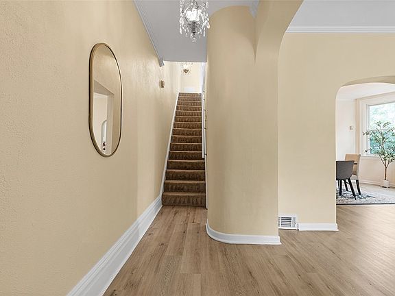 Welcome to this large move-in ready home, freshly painted throughout. The spacious living room receives great light from the large front window, and the dining space is also a sizeable room that could fit an extended table. The newly renovated bright white kitchen, adorned with gold accents and stainless appliances, features two sinks and plenty of cabinetry. The laundry room can function as both a mudroom and a pantry as well. On the second floor, the primary bedroom boasts a bay bump-out and a large closet, accompanied by a full bath and three additional bedrooms. The third floor offers a versatile flex space, perfect for a guest room or playroom, complete with a walk-in closet. The property includes a nice level backyard with off-street parking. Situated in a great location, it is within walking distance to Giant Eagle and provides easy access to Squirrel Hill, the Waterfront, universities, and hospitals.