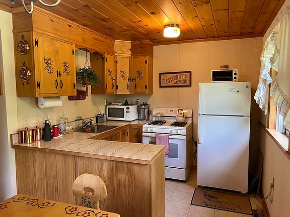 This turnkey home is ready for its new owners; and has been lovingly and meticulously cared for by the owners/builders since 1986. The interior of the home was handcrafted; as were most of the furnishings. Enter into the mudroom, and then into the open concept living/dining/kitchen. Slate hearth and stone wall behind a woodstove that can heat the entire home. First floor bedroom and full bath. Upstairs are two additional bedrooms, including the master bedroom with a princess balcony overlooking the spacious back yard, and a second full bath. Plenty of closets, newer roof (2015), hot water tank (2019), and kitchen appliances (2020). Double pane windows, that make for easy cleaning, and also keep away the cold on chilly winter days. Winter views of Mount Monadnock from the 2nd floor, which could be improved to include the lower level with some tree cutting. Vinyl flooring throughout, for low maintenance and easy cleanup after a day on the slopes. Whole house water filtration and humidity control on the furnace. Washer and dryer hookups are present in the main floor bathroom. Beautifully landscaped yard with mature perennials and a stone wall; each stone was harvested from the land by the sellers using their Red Flyer wagon. Truly a labor of love went into creating this lovely home. Showings start 7/23/2022