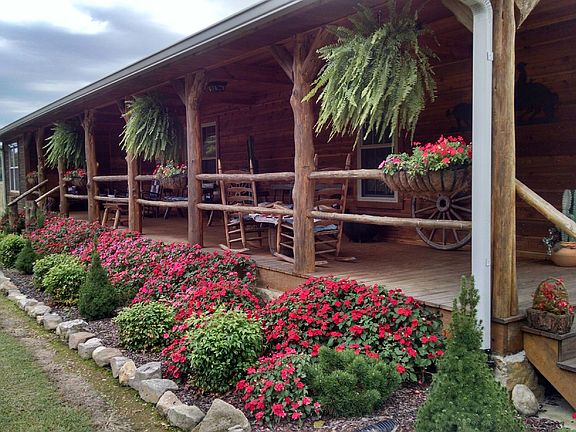 almost new log home with 1350 sq ft, full unfinished basement with 1 car garage and 2 car garage up, 3 bdrm 2 bath, beautiful hardwood floors, open floor plan, covered porches, large storage building with add on for tractor, creek on back of property, concrete drive, level 5 acres. home is a must see with barn doors great country home