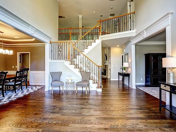 - Interior: 10 ft+ Ceil Main, 2-Story Foyer, Entrance Foyer, Trey Ceilings, Bookcases