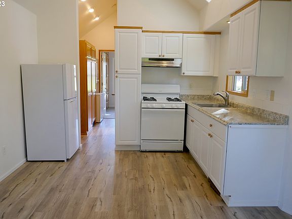 Cute, quaint & cozy!Flat beautiful piece of land, added and detitled 2 park models for the cabin feeling. A stick built addition that creates 2 separate living spaces Property is currently a duplex but can be a Single residence. Room to build a garage. Impeccable upgrades fresh exterior paint, new flooring. Vaulted ceilings, natural light, covered porches. Beautiful grounds.Great rental opportunities.