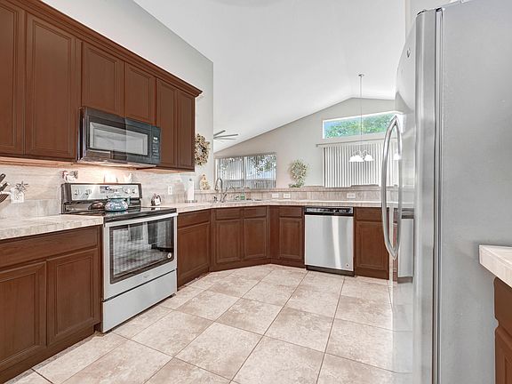 Welcome to this delightful home in Stratford Pointe! Situated in a prime location, this property offers convenience to everything the area has to offer, upgraded features, and a spacious floorplan. Beautiful kitchen with breakfast bar and marble countertops and Breakfast nook area off the kitchen/family room. Spacious primary bedroom includes a walk-in closet, upgraded en-suite bath with double sinks, garden tub and a walk-in shower. Garage has been finished out complete with drywall and concrete stamped floor. Connect AC for and create more living space or you can have a game room/exercise room. Can also be used as a regular garage. Enjoy outdoor living in your expansive backyard, perfect for hosting gatherings, gardening, or relaxing under the Florida sun. Looking for the perfect turnkey place? Furnishings are negotiable.