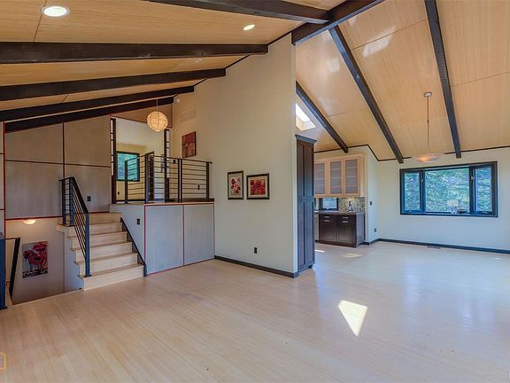 This is your opportunity to own a Contemporary Mountain Retreat in coveted Boulder Heights! This lush wooded lot has almost 7 Private acres of serenity with Rock outcroppings and amazing plains and Foothill Views. Less than 15 minutes on county-maintained roads to Broadway, shops, restaurants and entertainment. Just steps to over 200 acres of private neighborhood hiking and biking trails. This home boasts clean lines, a bright open floor plan with walls of windows, beamed cathedral ceilings & skylights. The Chef's kitchen with pot filler and newer appliances has a double slider door perfect for indoor-outdoor living. The hardwood floors throughout the entire house have been refinished. The master suite is bright and spacious with built-ins, a large walk in closet, barn doors, double sinks and the beautiful steam shower has a transom window. The lower level features stained concrete floors, a two-door walk-out to covered patio and a deck with wraparound bench seating and fenced in dog run. The entire house has been renovated and is move in ready. The multiple decks and covered patio provide outdoor space for year-round for entertaining and relaxing. Outside the property there is also a shed, fire pit, and an attached two car garage with built in shelving for storage. The driveway has ample area for several cars and turn around space. This house is ready for you to move in and enjoy!