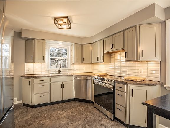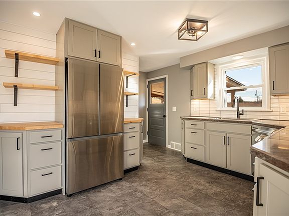 You will love the modern look of this move in ready ranch!! The curb appeal here will catch your eye with a stone accent and copper front door! Entering the home you will love the fresh modern look! A large living room with an electric fireplace and 55 inch tv!! Brand new eat in kitchen with gray cabinets, under cabinet lighting, and some butcher block counters! Open cabinets along one wall, are sure to catch your eye! Kitchen features a pantry and includes all new Samsung smart appliances. Three bedrooms with brand new carpet! Brand new bath with ceramic tile surround, Bluetooth speaker, and heated mirror!!! Bathroom has storage shelves and drawers Closets have motion activated lighting! The basement is a blank slate that can be easily finished into additional living space. 100 amp service and glass block windows. The outdoor living is just as fabulous! Covered back porch, fenced in back yard, and fire pit!
