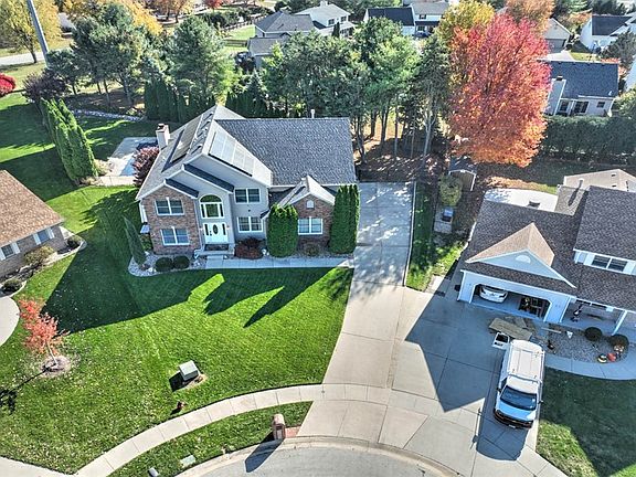 Beautiful well maintained home in cul de sac with Maroa Forsyth school district! Do not miss your opportunity on this unique home. The main level has an open concept kitchen/dining/living space with gas fireplace and cathedral ceilings. Kitchen has granite counter tops and stainless steal appliances. There is also a formal dining room, office space, half bathroom and a flex room by the attached garage. The upper level has three bedrooms plus a huge master en suite with custom closeting, a jetted tub and fireplace. Truly a unique space! The basement is finished out with another fireplace and large flex room and an additional bedroom. The backyard is a great entertainment space for warmer months with a patio area, fully fenced yard and inground pool with new liner and diving board. Per seller new roof 2024.