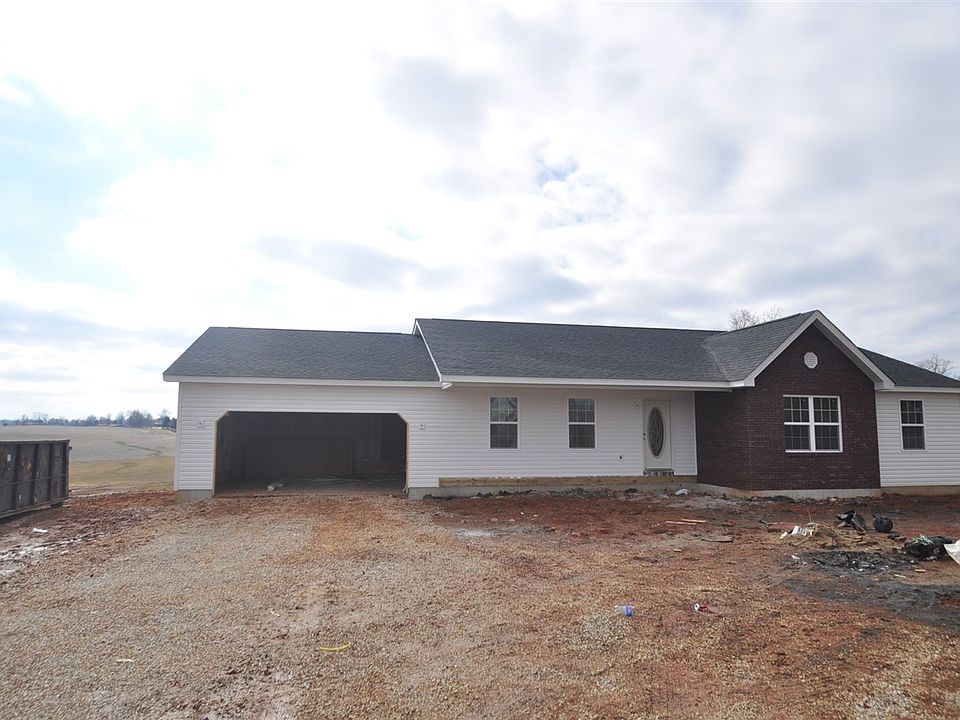 Open floor plan ranch style with a covered front porch. An unfinished walkout basement.