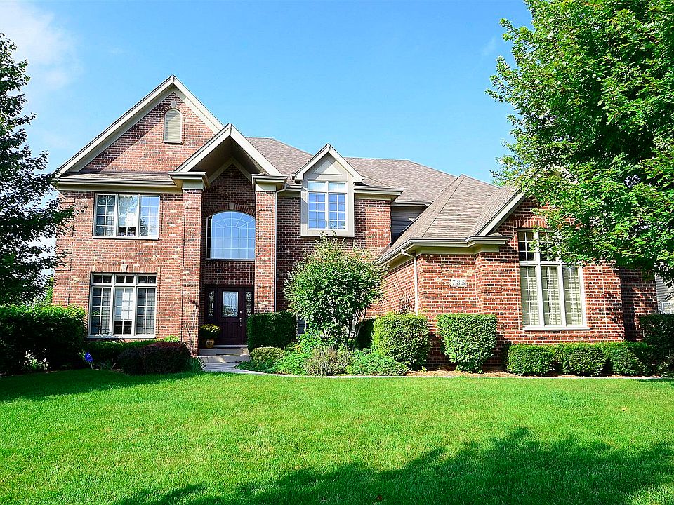 Custom touches are evident throughout this stunning brick and cedar two-story with more than enough room for the family! The exquisite landscaped lot has stamped concrete and paver walkways, paver patio, a sideload 2-story 3-car garage with glazed floor, and doors to the laundry/mud room and 3-season room. The 2-story foyer offers a taste of the custom millwork and other architectural features throughout the home, featuring a beautiful tile floor, wainscoting, chair rail, crown molding, fluted trim and woodcased openings. The living room is currently in use as a music room and the formal dining room features a coffered ceiling with rosette and chandelier. The kitchen has everything you could want, including a center island with raised breakfast bar - granite, of course, high-end stainless steel appliances, an eating space with access to the sunroom, and a wonderful butler pantry. This area is open to the family room with soaring brick and stone fireplace, fluted columns on granite-topped wood bases, and more. Double French doors lead into a main floor den with closet and there is a full bath nearby - could be a main floor guest room. The second floor is home to a luxurious master suite with double-door entry and fireplace, a spa-like master bath, and huge walk-in closet. Bedroom 2 has a private full bath and bedrooms 3 & 4 share a Jack & Jill bath with separate vanities. All the bedrooms have walk-in closets. A finished basement with bedroom 5, full bath, rec room, office, and wet bar also features unbelievable storage. There is more than can be described in this small space. You must see this home to appreciate everything it has to offer. And, the location is excellent. Just minutes from an outstanding private school, shopping, top-rated health and fitness facilities, and access to I-88.
