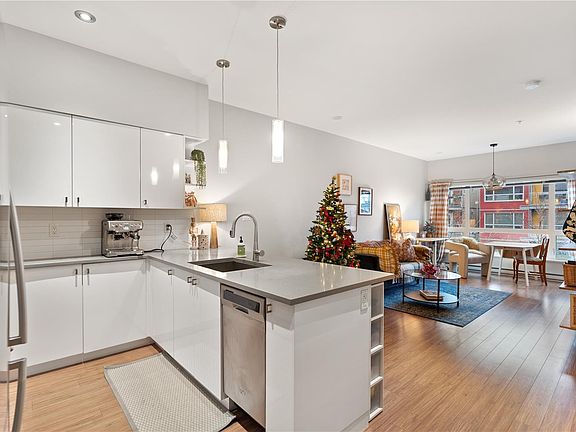 Welcome to the Railyards! This impressive second-floor, one-bedroom home offers a bright, thoughtfully designed layout with modern finishes throughout. The kitchen showcases glossy white cabinetry, quartz countertops, and stainless steel appliances, while the bathroom features luxurious heated flooring. Step onto your private balcony to take in peaceful views of the landscaped courtyard and enjoy beautiful evening sunsets. Perfectly positioned steps from the waterfront and only minutes to downtown, you’re close to bakeries, cafés, and great local dining. Launch your kayak from the community dock or hop on the Galloping Goose Trail for an easy bike commute. This pet-friendly, rentable condo also includes secure underground parking and a storage locker. An exceptional opportunity to settle into one of Victoria’s most sought-after waterfront neighbourhoods!