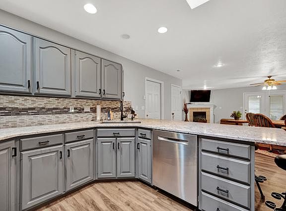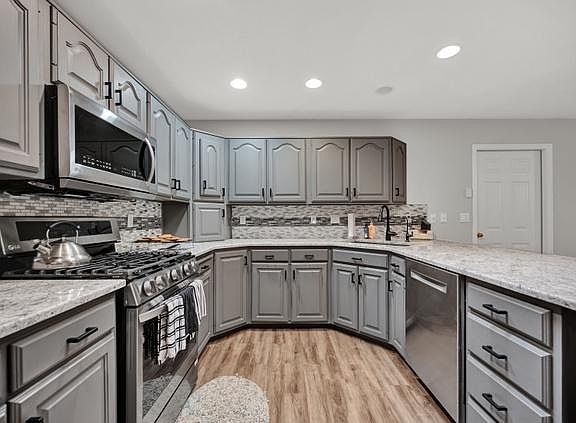 PRICE JUST REDUCED!! Gorgeous patio home! Completely remodeled! New laminate flooring throughout, new paint, new kitchen with stainless steel appliances, granite counter tops, new backsplash, farm style shaker cabinets. Plantation shutters. Large walk in linen closet. Covered patio. New water softener. New granite in both bathrooms. 2 car garage with opener. Gas fireplace with farm style mantle. Quiet cul-de-sac. Private yard. All brick. Natural gas hook-up for dryer. Above garage attic for storage with pull sown collapsible ladder access. NOT A 55+ COMMUNITY. Energy star windows. Grand master suite with private full bath. $25. per month HOA fee covers the street lights for the subdivision, snow plow for cul-de-sac street and cracks sealed in the street.