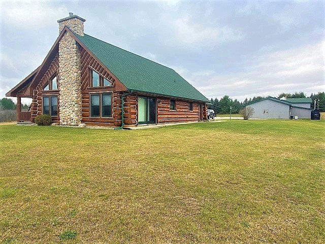 Who said you can't have it all? The pride of ownership is evident; everything here has been meticulously maintained. Just what you've always wanted to build! This fabulous Custom Log Estate tucked away on almost 9 unassuming acres has all the modern touches. Central air, in-floor radiant heat, tile floors, vaulted ceilings, and beautiful floor to ceiling stone gas log fireplace, on demand water system, in-ground and heated stunning salt-water swimming pool and pool pump house leads to the three seasons screened pool sitting room. Master Bedroom on the main floor with a private En Suite Master Bath featuring a relaxing whirlpool tub and separate giant double shower with numerous shower heads, as well as large walk in closet. Sliding glass doors in master bedroom lead to the 9x50 covered