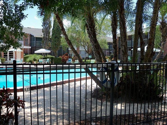 nice unit with screened patio overlooking the pool area. Large open floor plan with seperated kitchen area. two split large bedrooms with new carpet and lots of closet space.. water is included. close to downtown, the parks and Florida Mall