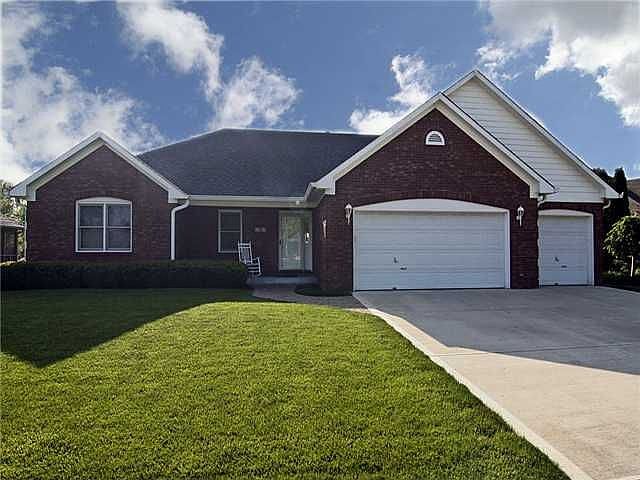 Pride of home ownership is evident in this well maintained brick ranch in Brookstone featuring spacious Great Room w cathedral ceiling and gas frplc Nice kitchen overlooking Breakfast Rm 17x12 Master Suite w/walk-in closet both Baths have been updated w/fixtures, flooring and lighting Owner installed top of the line Hunter Douglas Window Treatments Enjoy evenings in 17x10 heated Sun Room or on nice wood deck overlooking pond Home has lg 3 c gar plus drive-way new in 2008 wtr htr 2009 a/c 2007