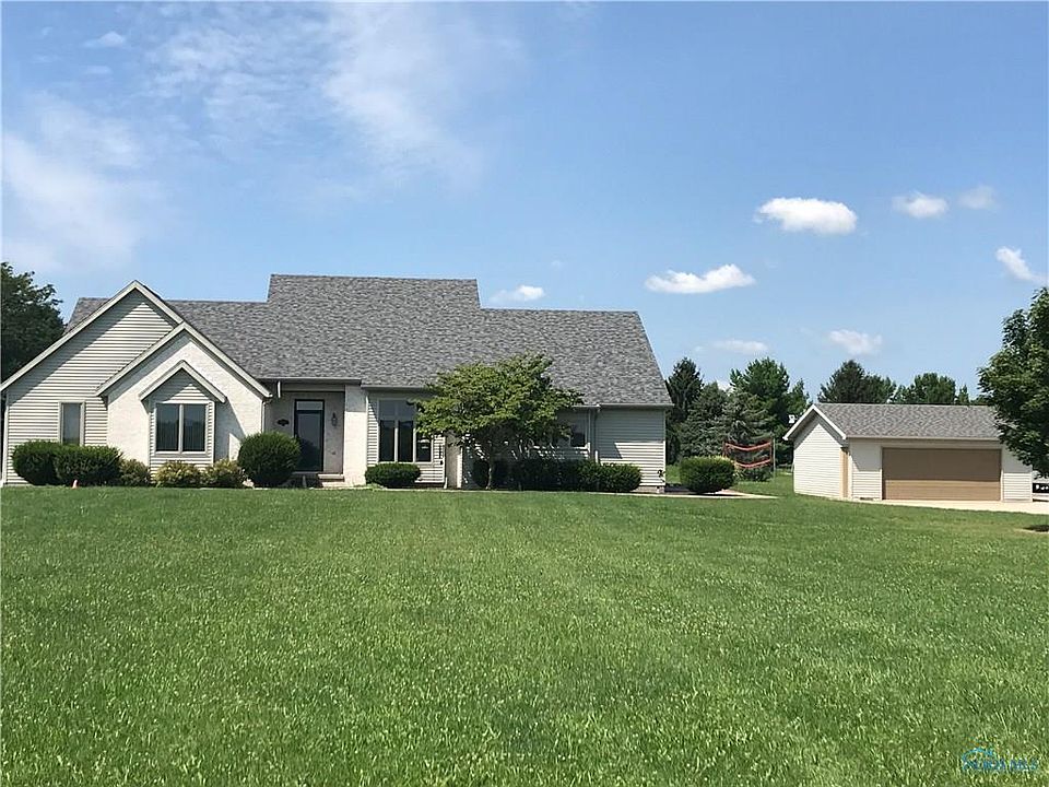 Beautiful AW home on 5 acres! This home boasts asian tiger wood floors, eat in kitchen w/ granite, master suite w/ walk in & huge basement w exercise, rec, & theatre rooms ,bar & full bath. Property is pristine w/ huge stamped patio, tiki bar w built in grill, & deck. Beach volleyball court overlooking stocked pond w small beach area. 2.5 car attached garage along with a 2 car detached garage.