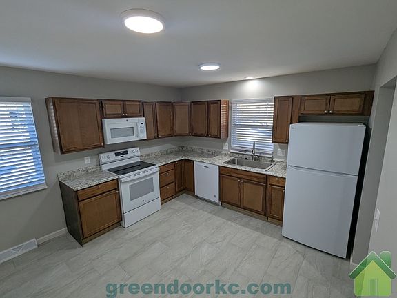 - Mowing provided free - No hidden fees - Pet friendly Spacious fully renovated 3 bedroom, 2 bathroom duplex located near a park, shopping, and hwy access. Less than 2 miles from downtown Overland Park Farmer's market with easy access to Hwy 35 and Hwy 69. There are two bedrooms and one bathroom upstairs, with an additional bedroom and a bathroom downstairs. A deep garage provides all the storage you need. The spacious living room has high a ceiling for an open feel. There are no add-on fees, you pay rent and utilities only. Upgraded energy efficient fixtures and appliances keep your electric bill low. Mowing service provided for free.Vouchers and Co-Signers not accepted. 600 credit recommended.