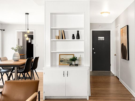 Ideally located in Westminster’s Apple Blossom Lane, this mid-century modern home sits on an incredible 1/3-acre lot. Boasting an open layout, updated windows and sliding glass door, the interior is filled with abundant natural light. A spacious living room with built-ins extends into a dining area featuring chic pendant lighting and newly finished wood floors. The kitchen offers generous cabinetry and a tiled backsplash. Stylishly updated, the main-floor baths flaunt classic subway tile. Five sizable bedrooms include the primary complemented by an en-suite bath. A separate basement apartment with its own exterior entrance and an interior lock-off option presents the potential for a multi-generational living or rental income (buyer to verify zoning), with both bedrooms featuring updated egress windows. Retreat outdoors to enjoy a covered back porch in a private backyard, complete with storage sheds and extensive grounds for gardening and allowing your animals to roam and play. A generous driveway provides excellent off street parking, and an attached 1-car garage provides covered parking plus storage and small workshop. Conveniently located with easy access to Federal Blvd and I-36, this home offers flexibility, charm and investment potential.