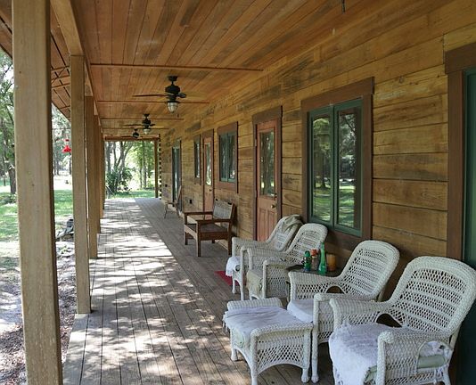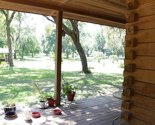 This property has a main home and a separate 1/1 apartment. The main home is a beautiful 3/2 with a great room and an office with separate entrance. The open floor plan is cypress inside and out with tile and laminate floor throughout. It has a soaring 15' cathedral ceiling. Walk out onto the 1800 SqFt wrap around porch looking over beautiful fully fenced in pastures with board and wire. The attached car port holds 4 cars and is made of pine. There are a variety of fruit trees on the property including Figs and pecan trees plus many more! This property is set up with cow pens and separate utility building including a shop and 6 bays for large farm equipment. There's even a hot tub pavilion with seating area!