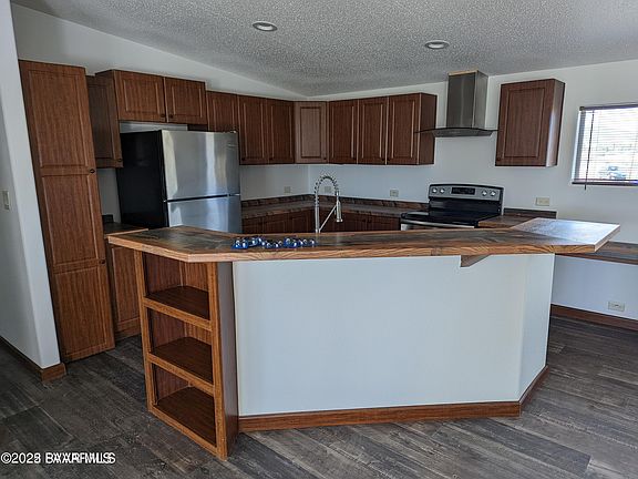 - Exterior features: Blinds, Ceiling Fan(s), Double Pane Windows, Driveway Gravel, High Ceilings, Kitchen Island, Laminate Counters, Liv/Din Combo, Live on One Level, Master Downstairs, Smoke Detector(s), View Type: Mountain(s), View Type: Panoramic, Wash/Dry Connection