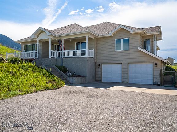 Unrivaled mountain and valley views from this custom home on over 5 acres and just minutes to town! The main floor boasts a spacious kitchen, pantry, formal living room, additional family room with stacked stone fireplace, wet bar and built in book cases. The main level also includes the master suite which has spectacular southern and western views, an attached office/den, large walk in closet, Jacuzzi tub and a walk-in shower. The other 2 bedrooms are located on the main level of the home and share a common full bathroom. Guest half bath on main level and laundry room. The downstairs has a large family room, a wine cellar, full bathroom and direct access to the over-sized attached double-stall garage. The property also includes a 28 x 26 foot shop with electricity and an antique pot-belly stove for those needing additional storage or work space. Native landscaping, fenced dog run and an organic garden. Covenants allow for 2 horses. Make this Montana dream your reality.