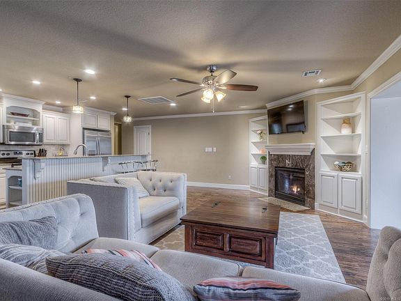 Gorgeous home located in Walnut Creek in Jenks Schools. This 3 bedroom, 2 bath features hand-scraped wood floorings, open floor plan. Wall-to-Floor windows in Sunroom that opens up to a very private backyard.Granite throughout, walk-in shower and many more amenities! Won't last long!