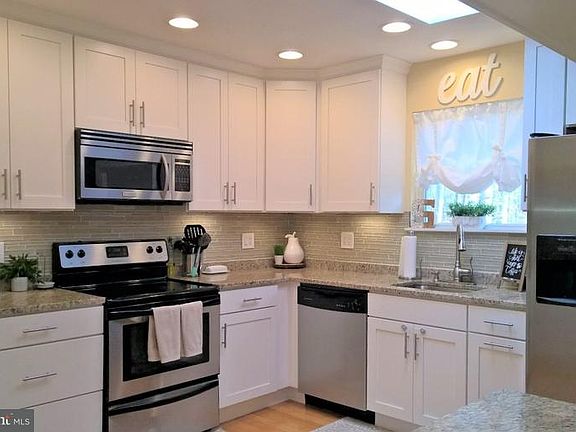 Don't miss this one! So many upgrades & updates....cathedral ceiling over living room & dining area; granite, under cabinet lighting, stainless appliances, skylight, recessed lights in kitchen; drop zone from garage includes desk & cabinets; theater area in rec room w/overhead projector & surround sound; wet bar; stamped concrete patio, large deck; many rooms have custom built-ins & hardwood