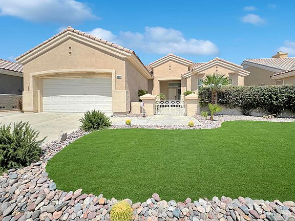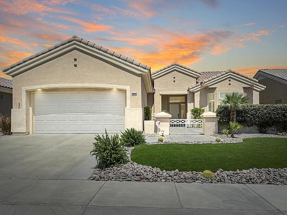 Stunning 2 bedroom + Den with a POOL! The large entry leads to an open concept great room which connects the kitchen, dining room and the living room. Spending time in a kitchen this well designed is a pleasure. With plenty of counter space and an island, cooking, baking and entertaining has never been more fun. A convenient breakfast area is also included in the kitchen for more casual dining. Windows open up to allow beautiful light to fill the entire space. The dining room is large enough for holiday dinners or intimate casual dining. The living room is the perfect combination of comfort and size to relax and unwind. A fireplace creates added ambiance. Open the sliders and this home really turns into a true indoor/outdoor experience. This is California living! Have breakfast or dinner next to your own pool. Three waterfalls create cascading water sounds. There's even a small grassy area for the dogs! The primary bedroom also has a slider leading directly out to the backyard. The en-suite bathroom is spacious and features a soaking tub, separate enclosed shower, two vanity sinks and a private toilet room. This model was originally built as a two bedroom PLUS den so the third room is large enough to be used as a bedroom if permitted. As you know by now, living in Sun City is like no other! With 24 hour gated security, multiple golf courses, pools, tennis, pickle ball courts, club houses and a market, this community is amazing!