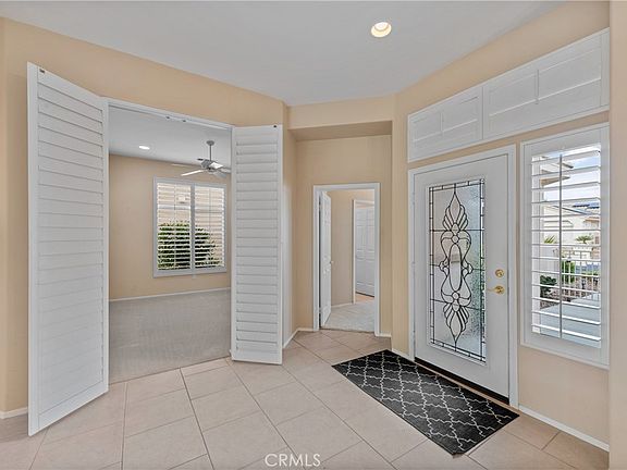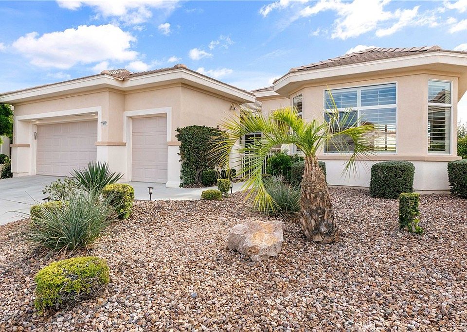 Large master suite with sliding doors to patio. Master bath includes dual vanities, soaking tub with glass block wall, separate shower and walk-in closet. Separate den/office with double doors. Second master/guest suite has bathroom with shower and tub. Inside separate laundry room with sink. 2 car garage plus golf car garage. Garage has epoxy flooring and built-in cabinets. Fenced, desert landscaped backyard with fruit trees, orange, grapefruit and tangelos. Located in the middle of the community and close to the popular Lakeview Clubhouse. Sun City Palm Desert is nationally renowned active adult community. Voted #1 senior community in the desert. It features 2 golf courses, 18 hole putting course, 4 pools , tennis, 12 Pickleball Courts, bocce ball, 2 restaurants/bars, post office, library, softball field, social and activity clubs, HOA includes Spectrum cable and internet. Security guard-gated community. Security patrolled 24/7.