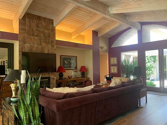 Nestled up against the majestic mountains, you'll find this fabulous property behind the gates of Mountain Cove! Completely remodeled, this 3 bedroom including office/den and custom Murphy bed has all the touches of a very special home in Indian Wells! Located at the end of a cul-de-sac with high vaulted ceilings, open floor plan, tiled fireplace, hardwood floors throughout, plantation shutters, chef's kitchen and upgraded bathrooms. The spacious enclosed private landscaped courtyard is ideal for the guest suits as they both have direct access. The nicely appointed backyard patio takes advantage of the gorgeous mountains, entertaining area and stunning sunsets! As a Indian Wells resident you have the privilege of golfing at the IW club for only $35, access to the complimentary gym at the Hyatt Regency and the Indian Wells Tennis Gardens is right across the street for tennis and pickle ball. You also have 20% discount on various restaurants and hotels in Indian Wells! Conveniently located to shops, restaurants and El Paseo! You'll love the peacefulness of living against the breathtaking mountains and enjoying the 3 sparkling pools and spas! A beautiful place to call home. Call today and make your appointment to visit this spectacular property!