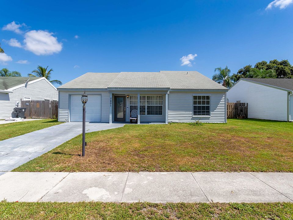 4 bedroom, 2 bathroom home with a front porch to enjoy your morning coffee. This home is located in Lake Worth with a small HOA. As you enter the home, it opens up to a tiled living room and dining room with the bedrooms off the dining room and the fourth bedroom is in the garage. The kitchen has high hat lighting, updated light wood cabinets with plenty of storage, lots of counter space, and a snack bar for quick meals. There are also French doors in the kitchen and dining room that lead out to the covered patio and backyard that has a great space for entertaining. The master bedroom has wood laminate flooring, large closet, with the master bath offering dual sinks and a jetted tub. Bedroom 2 is a nice size with tile floors and Bedroom 3 has updated laminate flooring and a private access to the guest bathroom via a pocket door. The garage has been converted into a 4th bedroom. The pergola covered patio has tile and wood flooring and is a great space and the backyard is big enough for a pool. The privacy fence has a side gate so you can store your boat. This home is centrally located and convenient to area shopping, restaurants, and much more.