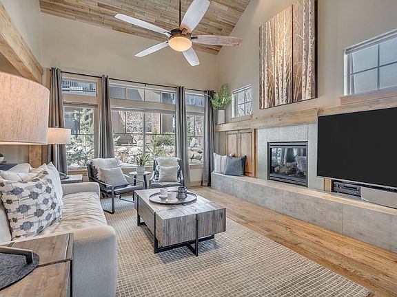 This exquisite modern mountain home has 3 beds, 4 baths, 2 car garage. The home comes fully furnished and is available for a one to two year lease. Home was remodeled in 2020 with an open modern floor plan. Gorgeous large plank hardwood floors, high end furnishings, modern window treatments. Kitchen has leather quartz countertops, 6 burner gas stove, dual ovens, and a large cook island for the culinary enthusiast. Bathrooms have gorgeous tile, counters, etc. Extensive lighting upgrades throughout. Master has vaulted ceilings, sitting room, as well as a see through fireplace connecting them. Walk out deck. Temp controlled walk-in wine cellar, separate gym and downstairs media entertainment room with a 72 inch LG flat screen. Private outdoor haven furnished with ample seating for entertaining, and indulge in the top-of-the-line Bullfrog Jacuzzi. In this wonderful community, the HOA takes care of all grounds keeping to include the backyard and driveway snow removal. Full size LG washer/dryer included. Home does have central AC. Easy commuting distance to PC and SL. Minutes to shopping, dining, skiing, trails, and more. Available NOW for a year lease or more. First month, last month, security deposit required. Pets negotiable. $500 additional pet fee. Small dog only. NO cats. Please call or text for an appointment to view.