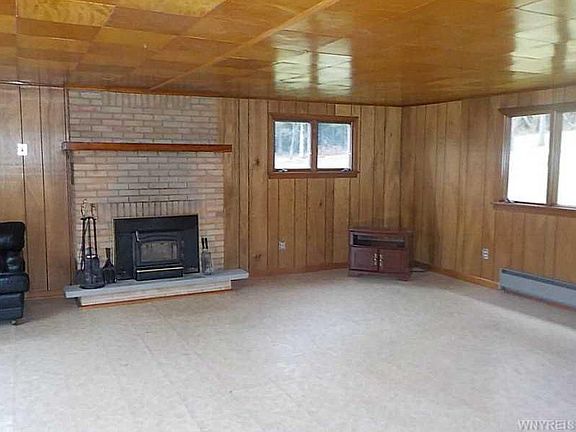 Nestled back off the road in a beautiful wooded & open setting. Large deck off the back of the house over looks the huge pond that this property a smart year round recreation investment. Newer kitchen open to small breakfast nook area. Spacious living room w/ fireplace is a perfect gathering area. Lower family room w/ wood stove, 2 bedrooms & utility area. Detached 2 car "barn" w/ second floor and good storage area. Just minutes off the 219 & to the ski slopes. Private but convenient location.