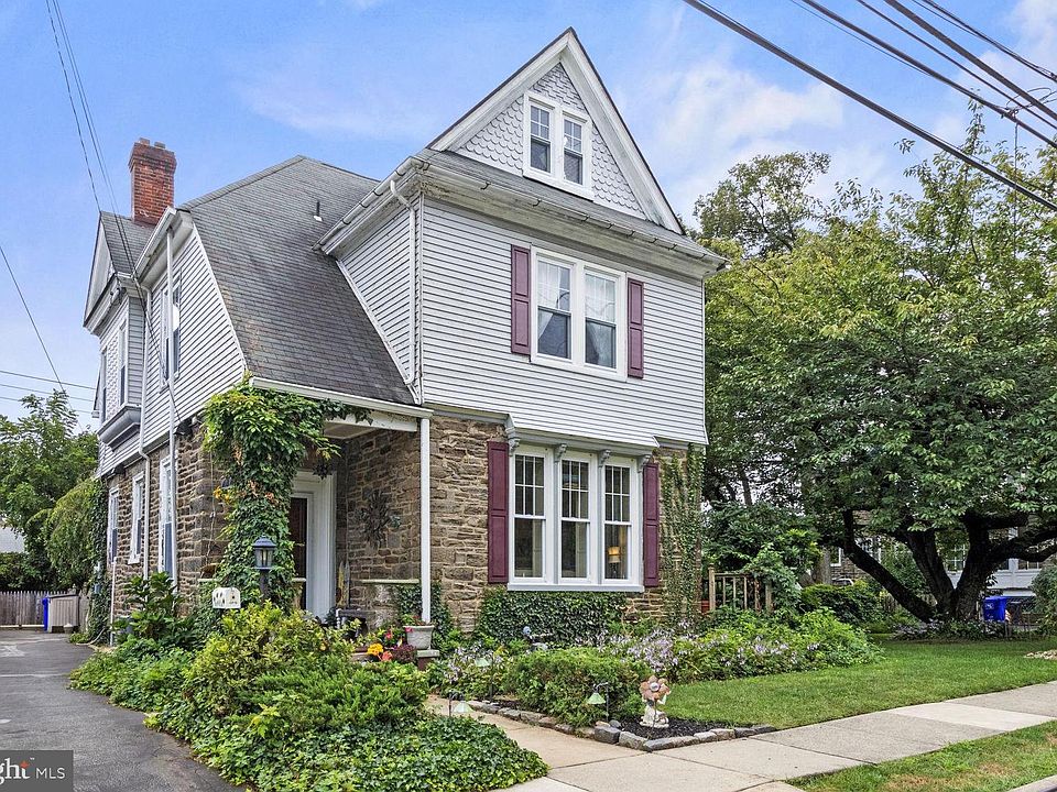 Showings begin Friday., Sept 22. You will find so much to love about 7851 Spring Avenue --from its old world charm to its modern updates and ideal location within the heart of a walkable community. This 1850 Victorian sits steps from an array shops, restaurants, parks and the regional rail station with direct service to Temple University, Center City and the Philadelphia International Airport. As you walk inside, you're drawn to this home's original architectural details like the hardwood floors, trim work and large windows. Bathed in natural light, the living room is anchored by a gas burning fireplace with an intricately carved mantle. The beautifully updated kitchen offers modern touches like concrete countertops, copper farmhouse sink, custom cabinetry, pantry, stainless steel appliances and a breakfast bar. Off the kitchen, you''ll find the formal dining room which is large enough for holiday parties yet cozy enough for quiet dinners. The family room/den on the rear of the home was added in 2012. Highlights include exposed stone walls, vaulted ceiling, skylight and French doors to the back deck. A powder room completes the first level. Upstairs, you'll find the primary suite, with updated en-suite and TWO walk-in closets --the large of which had been transformed from a bedroom. On this second level you'll also find two other good-sized bedrooms and a hall bathroom with glass shower stall and original claw foot tub. Bonus....Chores will be made easy with a laundry closet on the second floor conveniently located between the bedrooms. A fully finished third floor has two additional bedrooms that can be used as guest rooms, private office, studio, or home gym. Thanks to the 2 zone central air, the third floor is cooled by its own central air unit --keeping the third floor comfortable all year round. The unfinished basement offers plenty of storage or room to set up a work bench. The backyard is an entertainer's paradise with a back deck, a pair of patios, separate fire pit area and enough lawn for a game of volleyball, a play set or to let the dog run. If you love the uniqueness and beauty of older homes, don't miss this truly special 19th century gem.
