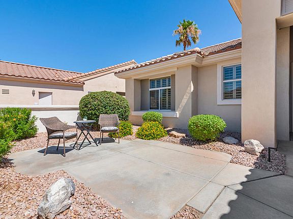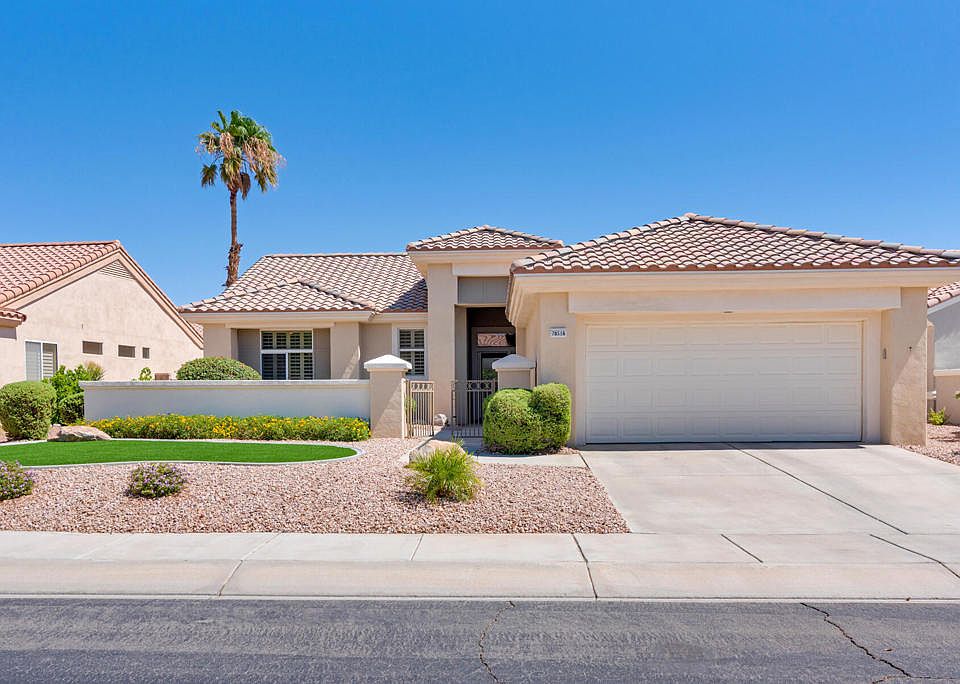 This tastefully updated home in Sun City Palm Desert showslike a model. Enjoy the all new kitchen, interior paint, flooring,ceiling fans, lighting, 6'' baseboards, bathroom vanities withnew faucets, stacked stone gas fireplace, HVAC, front andback landscaping, epoxied garage floor and water heater.This popular Morocco model features 2 bedrooms, 2bathrooms, a den/flex room and a golf cart niche in thegarage. Don't miss the opportunity of true carefree living.