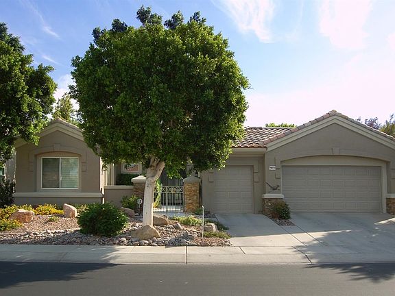Beautiful custom Monaco model in unique greenbelt private location on the putting course with lake and mountain views! Beautiful curb appeal with new exterior paint, rock accents and desert landscape. Back patio resurfaced with flagstone and wrought iron fence installed and fountain. Inside, new paint, LG washer and dryer, Miehle dishwasher. Kitchen has large island with granite tile. Master suite has view to greenbelt, double vanity, separate shower, custom closet. Guest room is extended with french doors to courtyard.