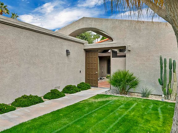 Tucked away in the private community of Mountain Cove, this three bedroom three bath home is the perfect retreat for your desert getaway, or an ideal home for those looking to relocate to the Coachella Valley. Located in the beautiful city of Indian Wells, you will find a guard gated community with a backdrop of mountains that includes three pools and spas, lush landscape, and the advantage of being in the IID power district for lower electric bills. The three spacious bedrooms have a wonderful separation offering privacy and a living room with high beamed ceilings and lots of windows allowing natural light. The two car garage is attached to the home and accessed from the front courtyard. Plantation shutters are throughout the home as is a water softener for your comfort. Ceiling fans offer extra cooling and the trees and landscape add to that feeling of being tucked away in the mountains. All of this and the added benefits of being an Indian Wells resident make this a fantastic home for you.