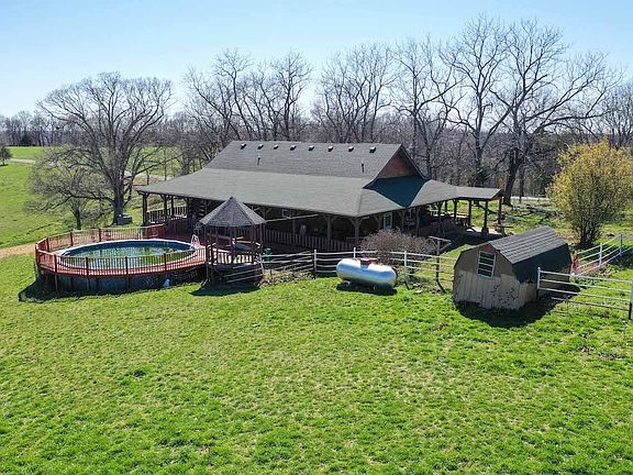 Property with distance views on paved road just minutes outside of Mountain Grove, Missouri!  Overlook your pastures from the wrap-around porch of this log home with walk-out basement.  40x100 barn with horse stalls and other shop/out buildings.  Level area next to barn for arena too!  Loads of grass with two pastures and scattered mature trees for shade and a creek.  The home has the primary suite and a second bedroom and bath on the main floor.  The open floor plan is perfect for entertaining and features hardwood cherry floors and vaulted ceilings.  The walk-out basement has 2 bedrooms (non-conforming) and a family room.  There are also other rooms on the basement level for food storage or space that could be finished.  The property has a new septic system and is on a private well.On the 50 acres m/l on this side of ZZ, there are also 2 rentals on each corner of the acreage.  These rentals are manufactured homes that are away from the main house.If you are looking for a home on paved frontage with great views in the Missouri Ozarks, check out this amazing property that has it all!This property has State Highway ZZ frontage and located just minutes from Norwood and Mountain Grove!***More Land Available:  An additional 63 acres available with this listing for $780,000.